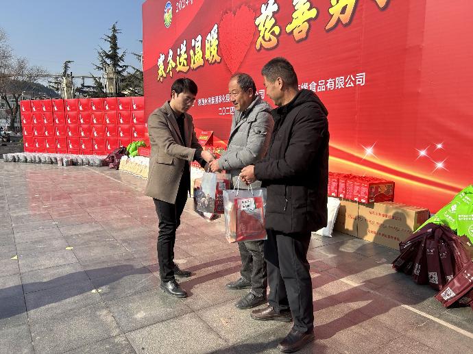 2024年1月29日,咸阳家友缘食品有限公司在陕西省咸阳市淳化县梨园广场参加了以“寒冬送温暖,慈善勇担当”为主题的慈善活动。本次活动旨在为淳化县300户贫困群众送上一份温暖,使他们能在这寒冬之中感受来自爱心企业的温暖与关爱。